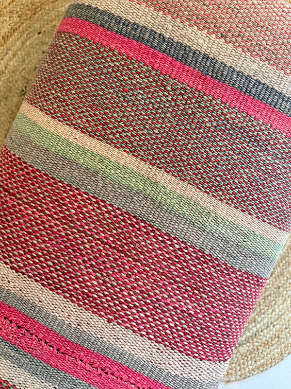 The fabric for Lazenta Collection is hand woven from natural alpaca wool and their vibrant colors are brought to life with natural dyes. As the fabric is entirely handcrafted by artisans, it may contain irregularities which help contribute to the unique and authentic charm of each piece. We hope you enjoy the distinctive beauty they bring to your space.