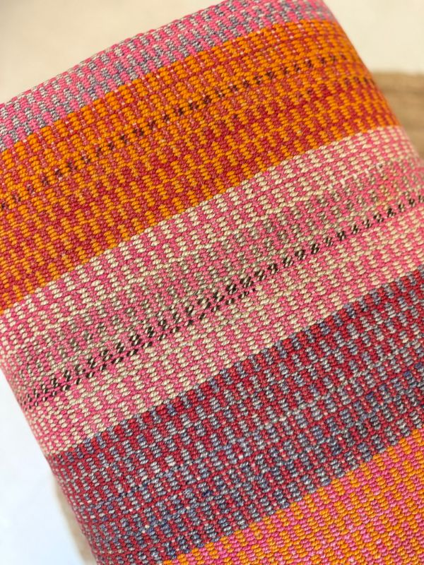The fabric for Lazenta Collection is hand woven from natural alpaca wool and their vibrant colors are brought to life with natural dyes. As the fabric is entirely handcrafted by artisans, it may contain irregularities which help contribute to the unique and authentic charm of each piece. We hope you enjoy the distinctive beauty they bring to your space.